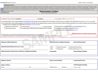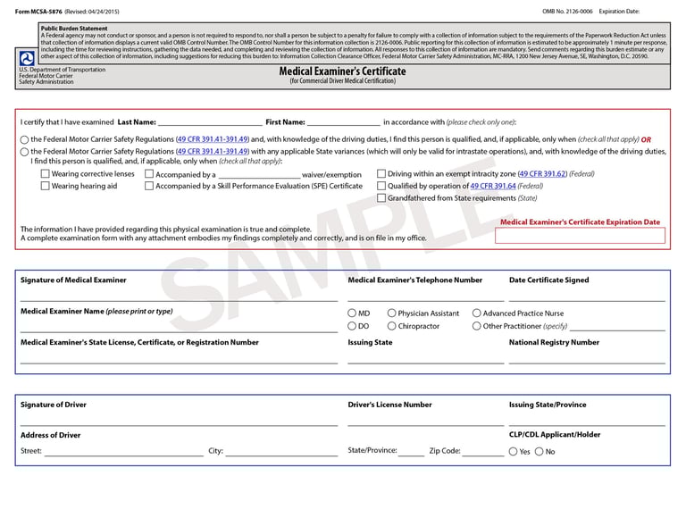 Physical Exams performed by members of the National Registry of Certified Medical Examiners.